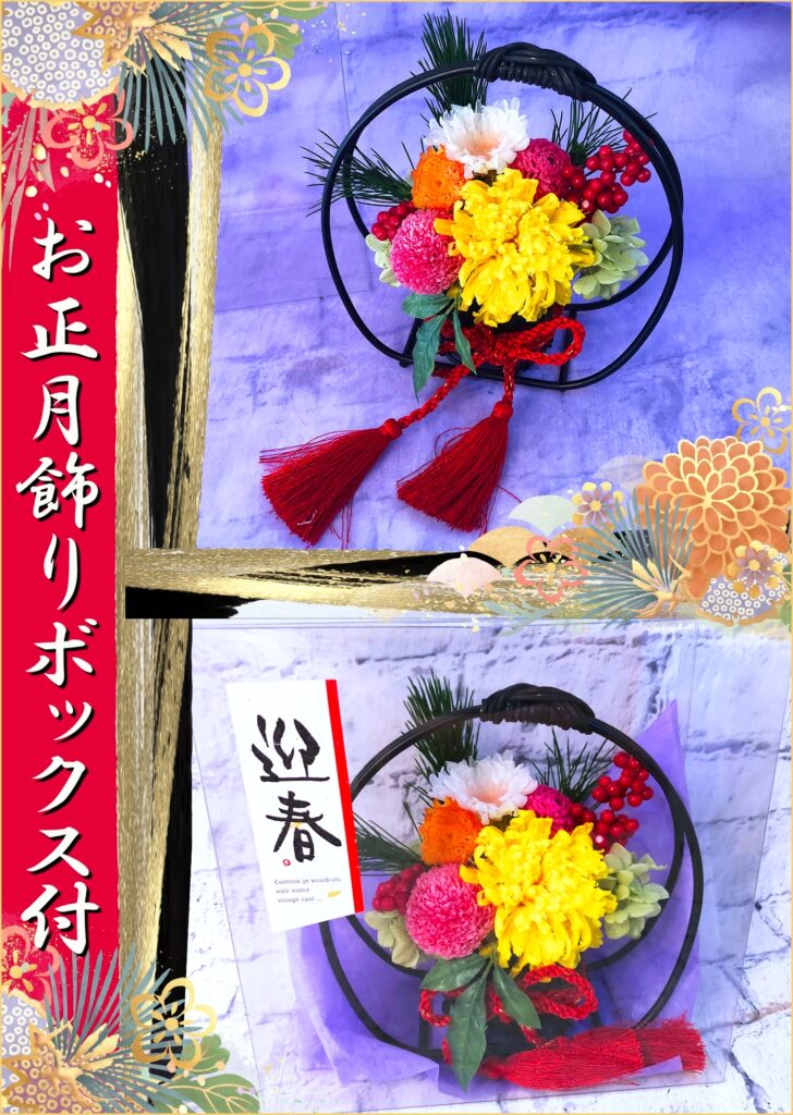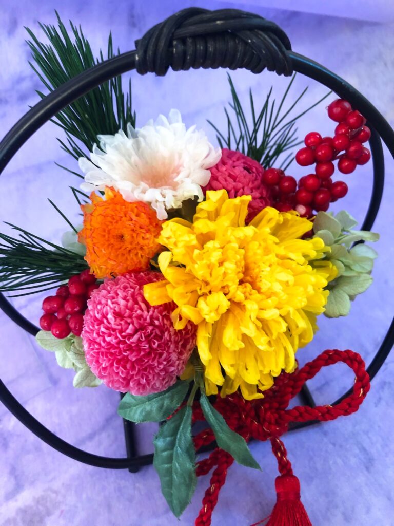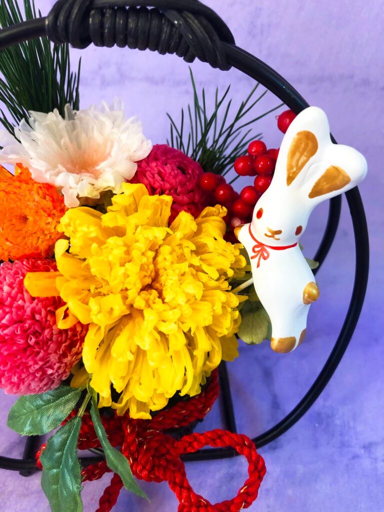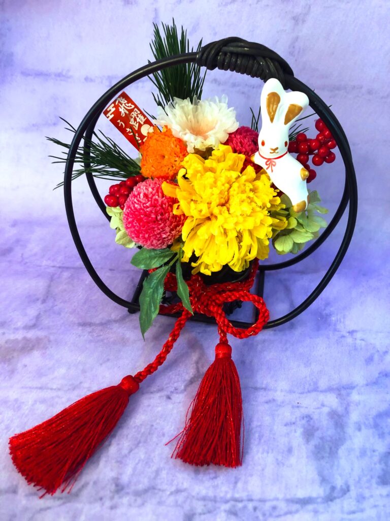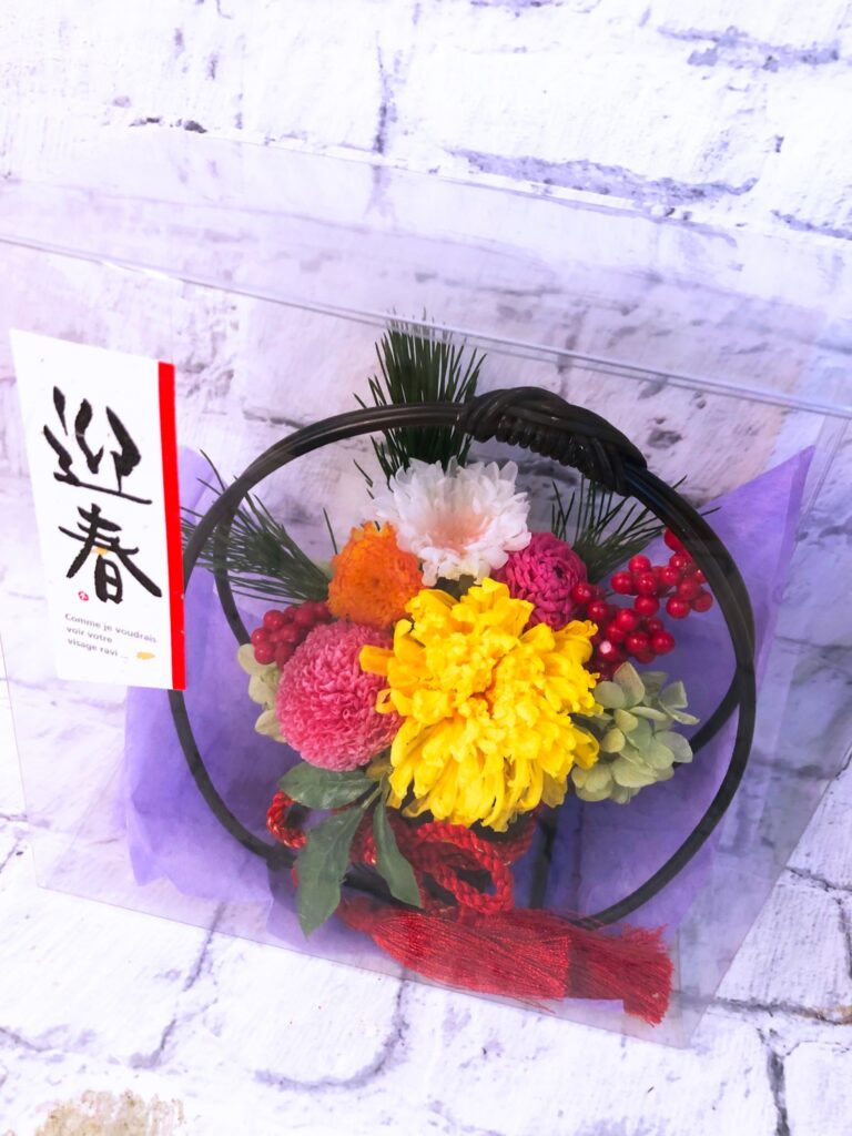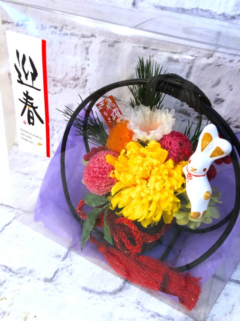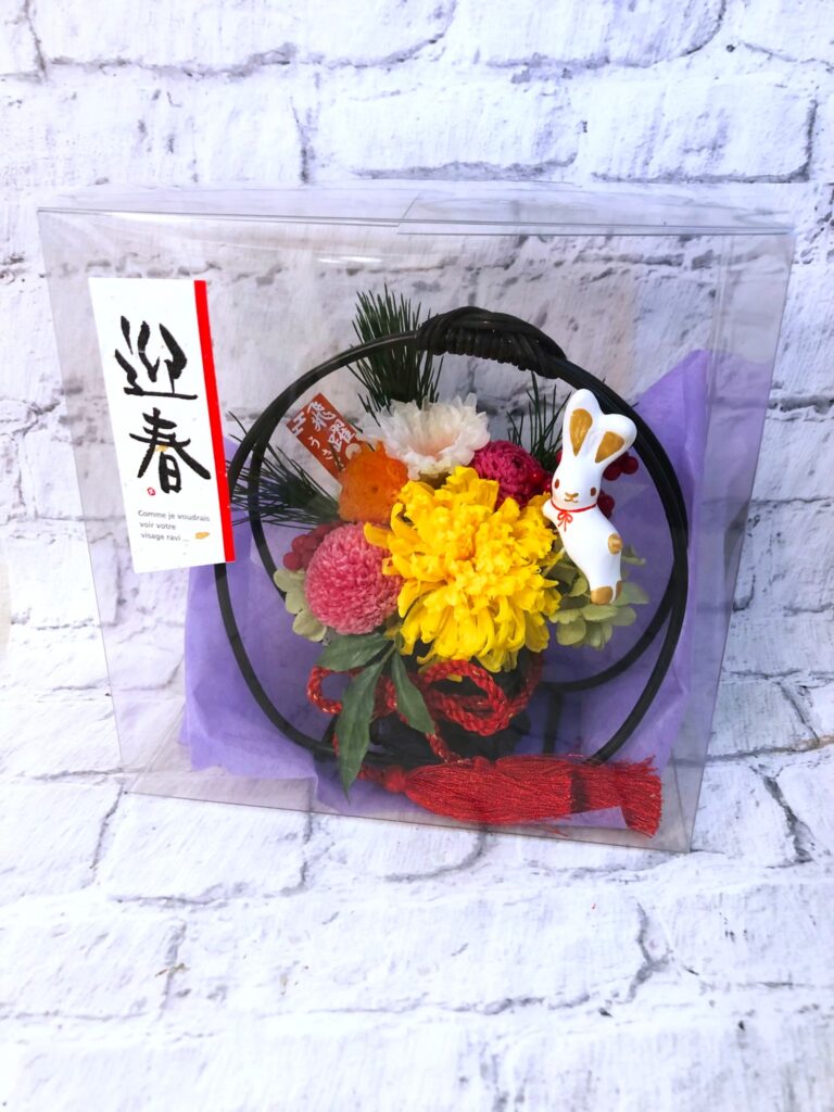 ピックを外せば、お正月が終わっても和風のアレンジとしてお楽しみいただけます。 (その年の干支ピックは毎年20個分ご用意してプレゼントしています。干支ピックは数に限りがありますのでお問い合わせ下さい。)